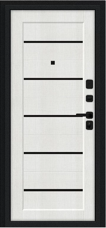 Надежная входная Дверь Браво Борн/SBlack Букле черное/Bianco Melinga премиум класса по цене 31 247 руб. Большая толщина стали защитит от проникновения в ваш дом, квартиру или коттедж. Используется очень качественная фурнитура: замки, цилиндры, ручки, защелки. Покрытие и отделка двери изготовлено под внимательным контролем производителя. Дверь имеет долгий срок службы и гарантию.