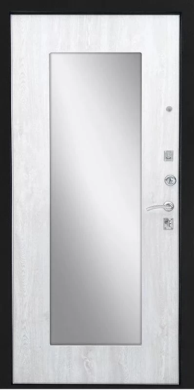 Надежная входная Дверь Ратибор Люкс Зеркало Черное серебро/Сосна белая премиум класса по цене 30 847 руб. Большая толщина стали защитит от проникновения в ваш дом, квартиру или коттедж. Используется очень качественная фурнитура: замки, цилиндры, ручки, защелки. Покрытие и отделка двери изготовлено под внимательным контролем производителя. Дверь имеет долгий срок службы и гарантию.